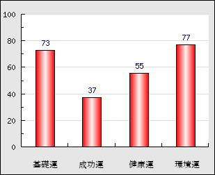 環境運 家庭や職場等での援助運・環境運を司ります。これが良いと配偶者や子供・職場の同僚などから助力が得られやすく、悪いと波乱・不和・孤独などがあります。 77点