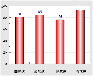 環境運 家庭や職場等での援助運・環境運を司ります。これが良いと配偶者や子供・職場の同僚などから助力が得られやすく、悪いと波乱・不和・孤独などがあります。 93点
