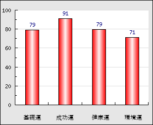 環境運 家庭や職場等での援助運・環境運を司ります。これが良いと配偶者や子供・職場の同僚などから助力が得られやすく、悪いと波乱・不和・孤独などがあります。 71点