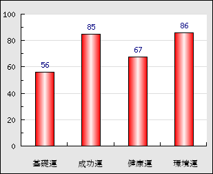 成功運 目的に対する成功運の強さをあらわします。この点数が高いほど自分の思い通りに成功し、逆に悪いと逆境・批判・障害などに苦心します。 85点