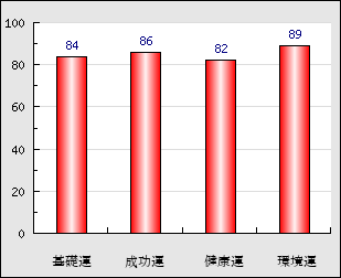 環境運 家庭や職場等での援助運・環境運を司ります。これが良いと配偶者や子供・職場の同僚などから助力が得られやすく、悪いと波乱・不和・孤独などがあります。 89点