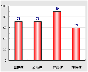 成功運 目的に対する成功運の強さをあらわします。この点数が高いほど自分の思い通りに成功し、逆に悪いと逆境・批判・障害などに苦心します。 71点