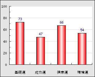 成功運 目的に対する成功運の強さをあらわします。この点数が高いほど自分の思い通りに成功し、逆に悪いと逆境・批判・障害などに苦心します。 47点