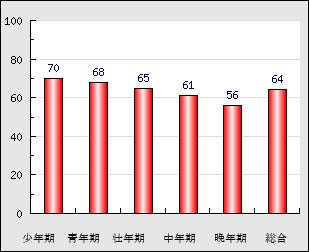 | 中年期 | 50~65歳頃 | 67.1点- 2.9 |