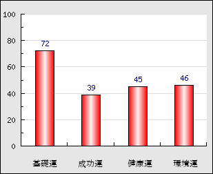 環境運 家庭や職場等での援助運・環境運を司ります。これが良いと配偶者や子供・職場の同僚などから助力が得られやすく、悪いと波乱・不和・孤独などがあります。 46点