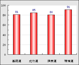 環境運 家庭や職場等での援助運・環境運を司ります。これが良いと配偶者や子供・職場の同僚などから助力が得られやすく、悪いと波乱・不和・孤独などがあります。 91点