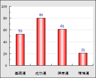 成功運 目的に対する成功運の強さをあらわします。この点数が高いほど自分の思い通りに成功し、逆に悪いと逆境・批判・障害などに苦心します。 80点