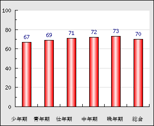 | 晩年期 | 65歳~ | 76.0点+ 0.6 |