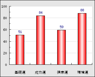 環境運 家庭や職場等での援助運・環境運を司ります。これが良いと配偶者や子供・職場の同僚などから助力が得られやすく、悪いと波乱・不和・孤独などがあります。 88点
