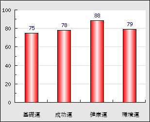 環境運 家庭や職場等での援助運・環境運を司ります。これが良いと配偶者や子供・職場の同僚などから助力が得られやすく、悪いと波乱・不和・孤独などがあります。 79点