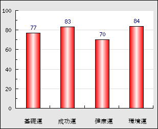 環境運 家庭や職場等での援助運・環境運を司ります。これが良いと配偶者や子供・職場の同僚などから助力が得られやすく、悪いと波乱・不和・孤独などがあります。 84点