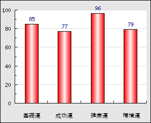 | 健康運 | 体力・健康に恵まれるか否かをあらわします。先天的に健康に恵まれても、これが悪いと次第に病弱となり、種々の病気に悩まされやすくなります。 | 96点 |