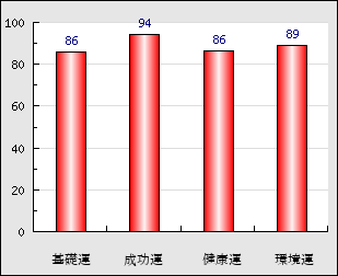 成功運 目的に対する成功運の強さをあらわします。この点数が高いほど自分の思い通りに成功し、逆に悪いと逆境・批判・障害などに苦心します。 94点