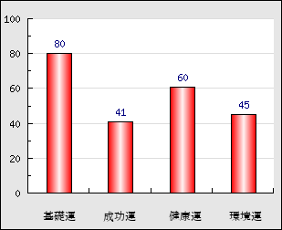 環境運 家庭や職場等での援助運・環境運を司ります。これが良いと配偶者や子供・職場の同僚などから助力が得られやすく、悪いと波乱・不和・孤独などがあります。 45点