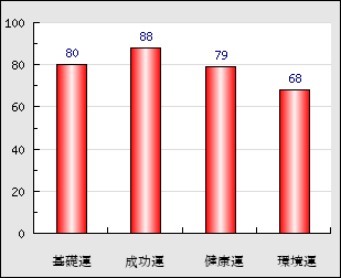 環境運 家庭や職場等での援助運・環境運を司ります。これが良いと配偶者や子供・職場の同僚などから助力が得られやすく、悪いと波乱・不和・孤独などがあります。 68点
