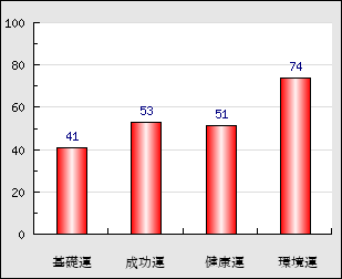 環境運 家庭や職場等での援助運・環境運を司ります。これが良いと配偶者や子供・職場の同僚などから助力が得られやすく、悪いと波乱・不和・孤独などがあります。 74点