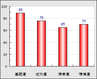 成功運 目的に対する成功運の強さをあらわします。この点数が高いほど自分の思い通りに成功し、逆に悪いと逆境・批判・障害などに苦心します。 76点