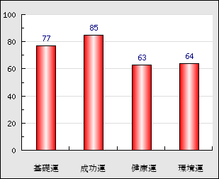 環境運 家庭や職場等での援助運・環境運を司ります。これが良いと配偶者や子供・職場の同僚などから助力が得られやすく、悪いと波乱・不和・孤独などがあります。 64点