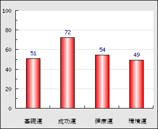 環境運 家庭や職場等での援助運・環境運を司ります。これが良いと配偶者や子供・職場の同僚などから助力が得られやすく、悪いと波乱・不和・孤独などがあります。 49点