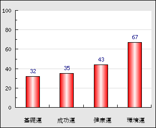 環境運 家庭や職場等での援助運・環境運を司ります。これが良いと配偶者や子供・職場の同僚などから助力が得られやすく、悪いと波乱・不和・孤独などがあります。 67点