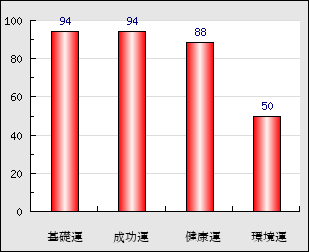 環境運 家庭や職場等での援助運・環境運を司ります。これが良いと配偶者や子供・職場の同僚などから助力が得られやすく、悪いと波乱・不和・孤独などがあります。 50点