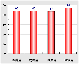 環境運 家庭や職場等での援助運・環境運を司ります。これが良いと配偶者や子供・職場の同僚などから助力が得られやすく、悪いと波乱・不和・孤独などがあります。 94点
