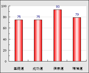 成功運 目的に対する成功運の強さをあらわします。この点数が高いほど自分の思い通りに成功し、逆に悪いと逆境・批判・障害などに苦心します。 75点