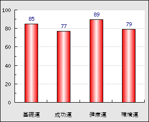 | 環境運 | 家庭や職場等での援助運・環境運を司ります。これが良いと配偶者や子供・職場の同僚などから助力が得られやすく、悪いと波乱・不和・孤独などがあります。 | 79点 |