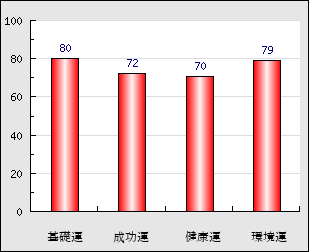 環境運 家庭や職場等での援助運・環境運を司ります。これが良いと配偶者や子供・職場の同僚などから助力が得られやすく、悪いと波乱・不和・孤独などがあります。 79点