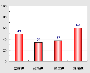 環境運 家庭や職場等での援助運・環境運を司ります。これが良いと配偶者や子供・職場の同僚などから助力が得られやすく、悪いと波乱・不和・孤独などがあります。 60点