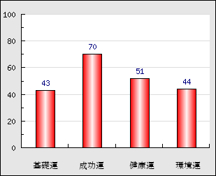 成功運 目的に対する成功運の強さをあらわします。この点数が高いほど自分の思い通りに成功し、逆に悪いと逆境・批判・障害などに苦心します。 70点