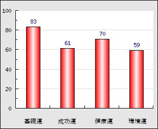 成功運 目的に対する成功運の強さをあらわします。この点数が高いほど自分の思い通りに成功し、逆に悪いと逆境・批判・障害などに苦心します。 61点