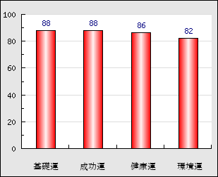 成功運 目的に対する成功運の強さをあらわします。この点数が高いほど自分の思い通りに成功し、逆に悪いと逆境・批判・障害などに苦心します。 88点