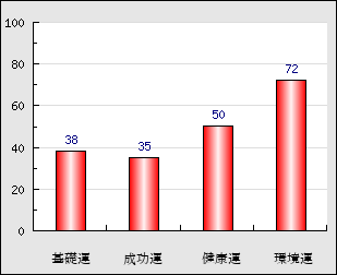 環境運 家庭や職場等での援助運・環境運を司ります。これが良いと配偶者や子供・職場の同僚などから助力が得られやすく、悪いと波乱・不和・孤独などがあります。 72点