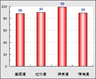 | 環境運 | 家庭や職場等での援助運・環境運を司ります。これが良いと配偶者や子供・職場の同僚などから助力が得られやすく、悪いと波乱・不和・孤独などがあります。 | 89点 |