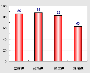 環境運 家庭や職場等での援助運・環境運を司ります。これが良いと配偶者や子供・職場の同僚などから助力が得られやすく、悪いと波乱・不和・孤独などがあります。 63点
