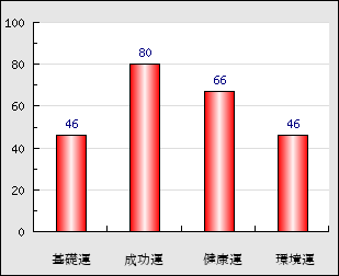 環境運 家庭や職場等での援助運・環境運を司ります。これが良いと配偶者や子供・職場の同僚などから助力が得られやすく、悪いと波乱・不和・孤独などがあります。 46点
