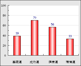 成功運 目的に対する成功運の強さをあらわします。この点数が高いほど自分の思い通りに成功し、逆に悪いと逆境・批判・障害などに苦心します。 70点