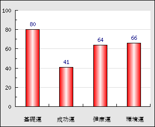 健康運 体力・健康に恵まれるか否かをあらわします。先天的に健康に恵まれても、これが悪いと次第に病弱となり、種々の病気に悩まされやすくなります。 64点