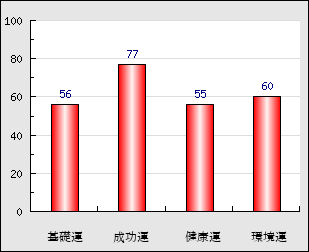 環境運 家庭や職場等での援助運・環境運を司ります。これが良いと配偶者や子供・職場の同僚などから助力が得られやすく、悪いと波乱・不和・孤独などがあります。 60点