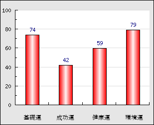 成功運 目的に対する成功運の強さをあらわします。この点数が高いほど自分の思い通りに成功し、逆に悪いと逆境・批判・障害などに苦心します。 42点