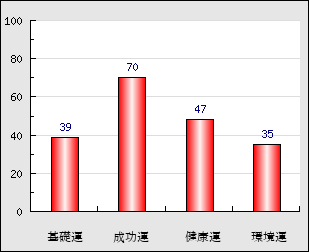 成功運 目的に対する成功運の強さをあらわします。この点数が高いほど自分の思い通りに成功し、逆に悪いと逆境・批判・障害などに苦心します。 70点