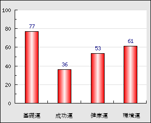 環境運 家庭や職場等での援助運・環境運を司ります。これが良いと配偶者や子供・職場の同僚などから助力が得られやすく、悪いと波乱・不和・孤独などがあります。 61点