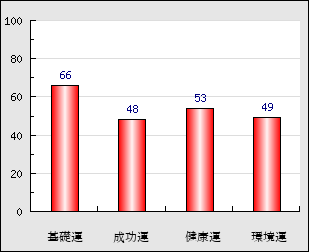 環境運 家庭や職場等での援助運・環境運を司ります。これが良いと配偶者や子供・職場の同僚などから助力が得られやすく、悪いと波乱・不和・孤独などがあります。 49点