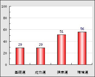 成功運 目的に対する成功運の強さをあらわします。この点数が高いほど自分の思い通りに成功し、逆に悪いと逆境・批判・障害などに苦心します。 29点