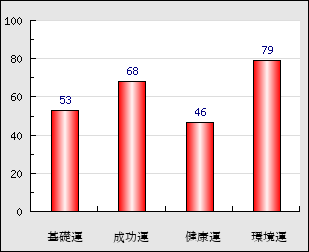 環境運 家庭や職場等での援助運・環境運を司ります。これが良いと配偶者や子供・職場の同僚などから助力が得られやすく、悪いと波乱・不和・孤独などがあります。 79点