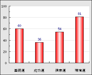 環境運 家庭や職場等での援助運・環境運を司ります。これが良いと配偶者や子供・職場の同僚などから助力が得られやすく、悪いと波乱・不和・孤独などがあります。 81点