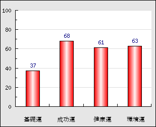 成功運 目的に対する成功運の強さをあらわします。この点数が高いほど自分の思い通りに成功し、逆に悪いと逆境・批判・障害などに苦心します。 68点