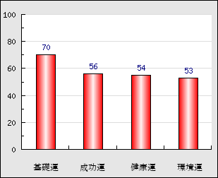 成功運 目的に対する成功運の強さをあらわします。この点数が高いほど自分の思い通りに成功し、逆に悪いと逆境・批判・障害などに苦心します。 56点