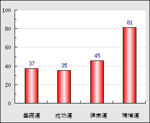 環境運 家庭や職場等での援助運・環境運を司ります。これが良いと配偶者や子供・職場の同僚などから助力が得られやすく、悪いと波乱・不和・孤独などがあります。 81点